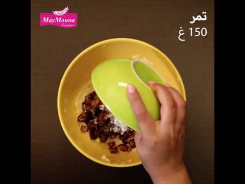 أضيفي الخميرة و البيضة و التمر المقطع ثم دقيق الحلويات ميمونة